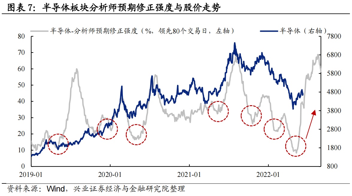三、分析师预期修正强度:领先指标指向“新半军”短期震荡整固后或仍将继续上行,珍惜股价震荡带来的布局机会