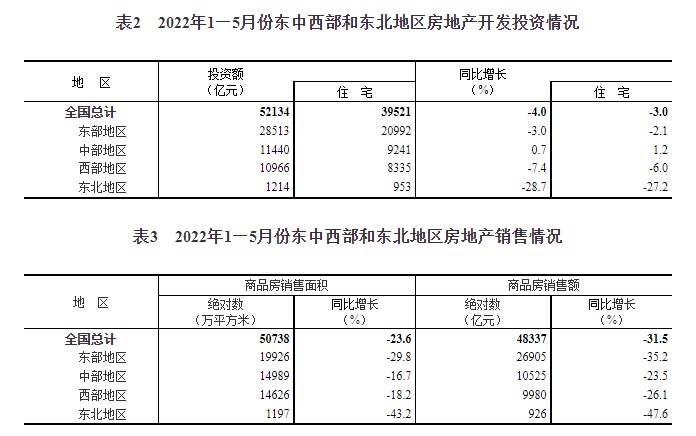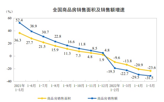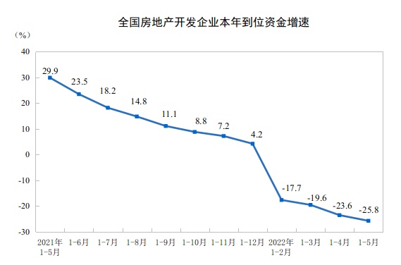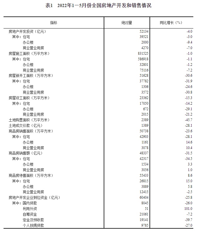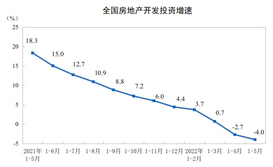 2022年1—5月份全国房地产开发投资下降4.0%