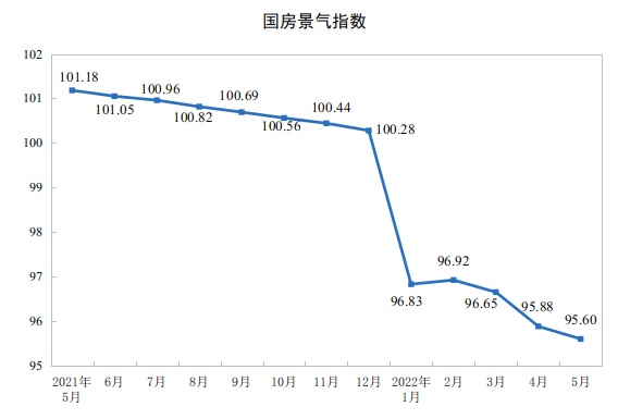5月份,房地产开发景气指数(简称“国房景气指数”)为95.60。