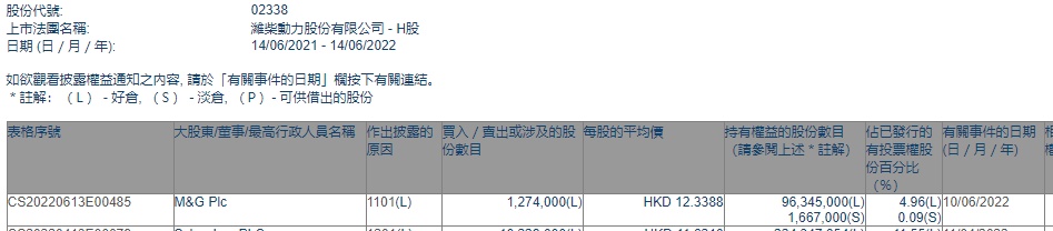 智通财经APP获悉,香港联交所最新资料显示,6月10日,M&G Plc增持潍柴动力(02338)127.4万股,每股作价12.3388港元,总金额约为1571.9631万港元。增持后最新持股数目约为9634.5万股,最新持股比例为4.96%。