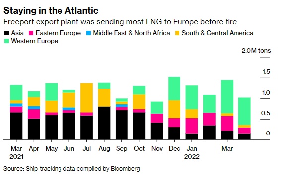 在火灾发生前,Freeport出口厂将大部分LNG运往欧洲
