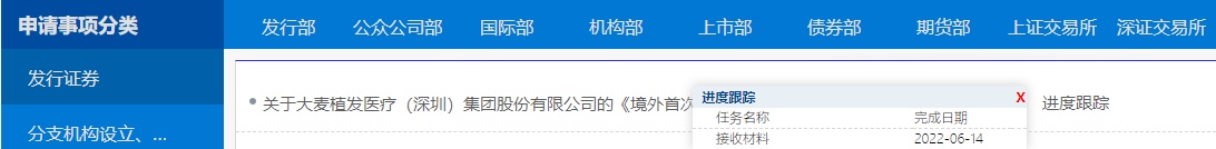证监会:大麦植发医疗(深圳)集团境外IPO申请已获接收材料