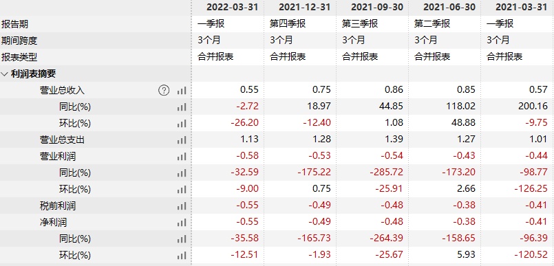 具体而言,据财报数据披露,2022年第一季度,该公司实现营收5532.4万美元,2021年同期为5686.8万美元,同比下降约2.7%;净亏损为5495.3万美元,2021年同期为4053.3万美元,亏损额进一步扩大;归属股东每股基本和摊薄净亏损为0.10美元,2021年同期为0.15美元。