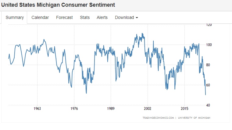 6月10日公布的美国密歇根消费者信心指数显示,该指数在6月急剧下降至50.2的创纪录低点,远低于市场预期58。其中,46%消费者将他们的负面看法归因于通货膨胀,这是自 1981 年大萧条以来的最大份额。