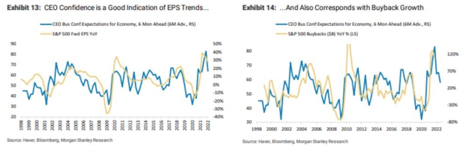 Wilson的团队对1998年以来首席执行官和企业回购的情绪进行了分析,发现商业领导信心下降(就像现在的情况)往往会导致回购推迟大约6个月。如果这一次的情况延续下去,今年下半年的回购可能会下降。