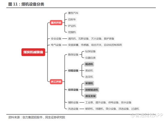 不难看出,在煤炭价格高企的情况下,对于煤机的需求会提升,另外随着煤机智能化的推进,煤机智能化将是一个新的增长点。在整个煤机的价值环节中,根据创力集团招股书,一般综采设备占到煤炭机械设备总投资70%比重,其中掘进机、采煤机、刮板输送机、液压支架又占综采设备的80%,其中液压支架在综采设备中价值量占比最大,2015年占比约为45%。