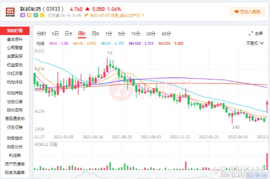 自6月6日开始,联邦制药股价连续数日反弹,走出九连阳,截至6月16日以4.76港元收盘,累计涨幅约33%。尽管反弹,可要知道,自2021年5月以来,该公司股价便一路下跌,一年多时间内市值蒸发近半。