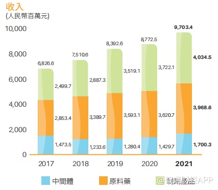 作为公司业绩的另一大支柱,联邦制药的抗生素业务2021年共收入62.66亿元,其中制剂产品销售收入23.05亿元,同比增长10.2%;原料药销售收入39.61亿元,同比增长9.72%。