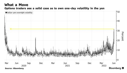 数据显示,利率决议前,对冲日元单日价格波动的需求是自2020年3月疫情首次冲击全球市场以来的最高水平。交易员还押注,日元可能会出现自2020年3月以来最引人注目的反弹。