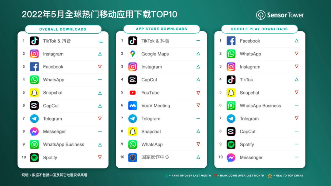 排名前五的另外3款应用依次Facebook(META.US)、WhatsApp 和 Snapchat。