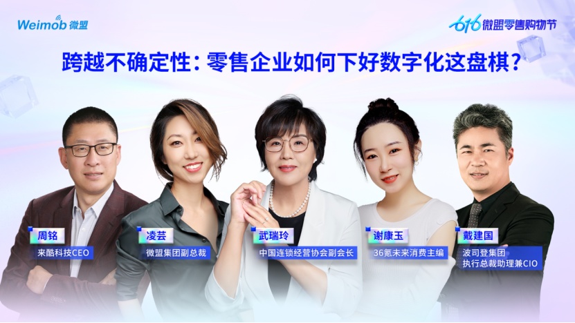 本次直播大会以“韧性增长”为主题,当各种黑天鹅事件不断爆发,培养韧性获得可持续增长成为企业面临的重大挑战。活动当天,由36氪未来消费主编谢康玉主持,CCFA副会长武瑞玲、微盟集团副总裁凌芸、来酷科技CEO周铭和波司登集团执行总裁助理兼CIO戴建国围绕“跨越不确定性:零售企业如何下好数字化这盘棋?”进行了连麦圆桌讨论。