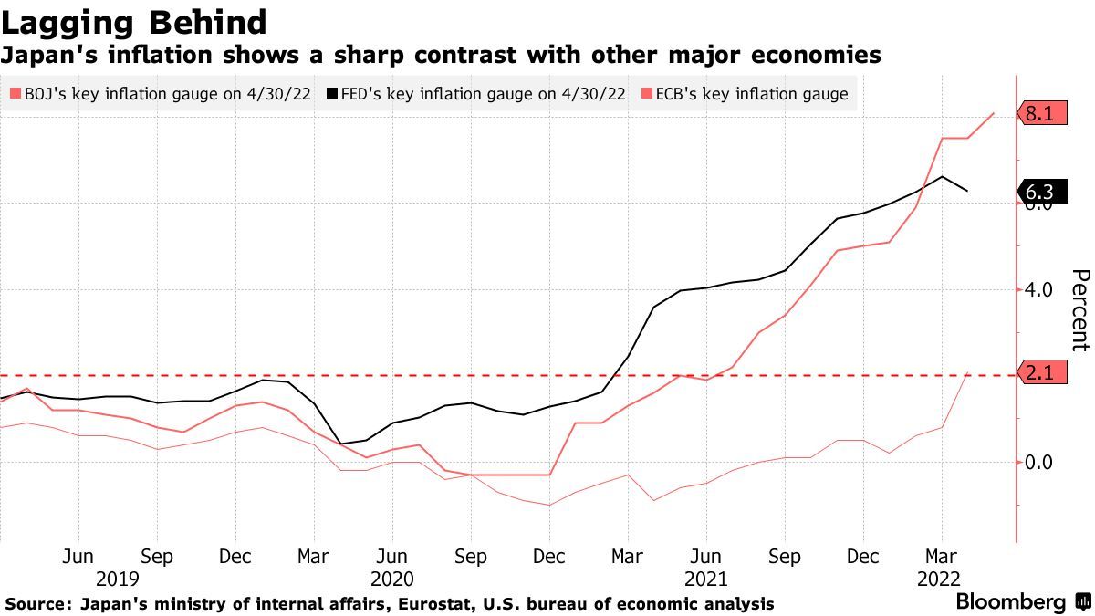 日本央行继续无视全球各大央行“收水”浪潮,以及市场对日元和日本政府债券集中施压的局面,坚持将利率维持在负值水平以及维持日本央行对国债收益率曲线的控制措施。