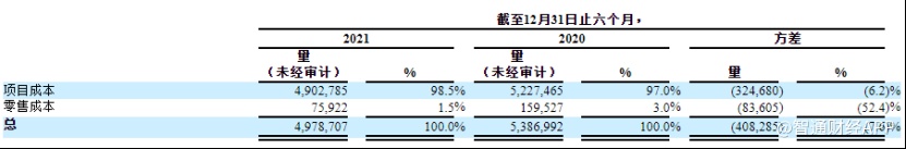 作为一家商用厨具制造企业,其原材料和员工成本是收入成本的主要组成部分。并且其原材料与员工成本的增减几乎与项目收入保持正相关关系。从招股书可以看到,2021财年,利邦厨具的收入成本中,项目成本为490.3万美元,相比上年同期下降6.2%,趋势与当期收入保持一致,并且在报告期内公司项目成本占收入成本比重始终保持在97%以上。
