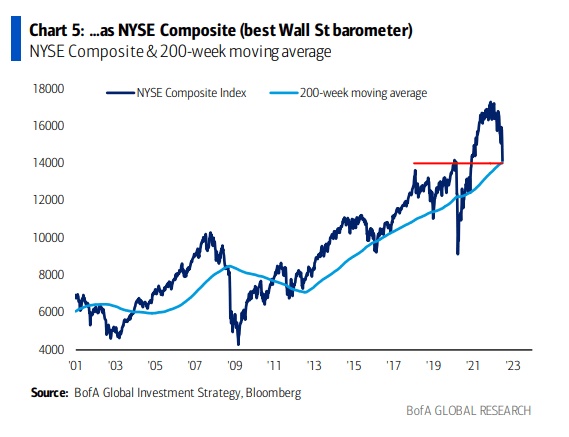 他指出,NSYE综合指数(美国股市+ADR+债券ETF)是华尔街公认的市场晴雨表,目前正接近200周移动均线14,000点。他尤其强调,如果跌破14000点那将是“重大破位”,交易员们将把目标锁定在2018年的低点11,000点,届时可能将出现“熊市暴跌”行情。