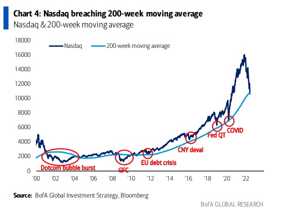 此外,他还指出纳斯达克综合指数已突破200周移动平均线,下行趋势难以避免,在股市之外,美国国债收益率在2022年结束前将面临大幅度波动。