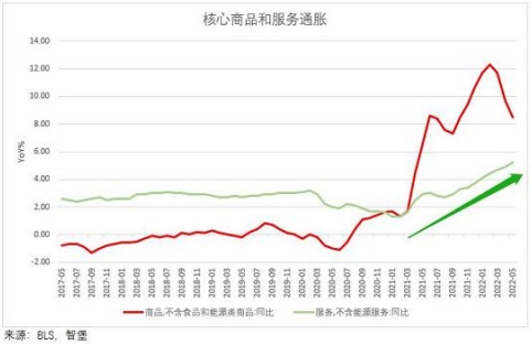 另就最新公布的数据来看,亦指向了通胀正有向不可控的方向加速演绎的趋势。据美国劳工部披露的数据,5月美国CPI环比上涨1%,同比上涨8.6%,同比涨幅创下近40年以来最大值。而若剔除波动较大的食品和能源价格后,核心CPI环比上涨0.6%,同比上涨6%,涨幅亦均高于市场预期。
