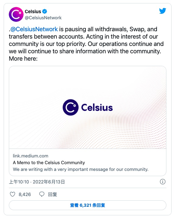 Celsius冻结提款