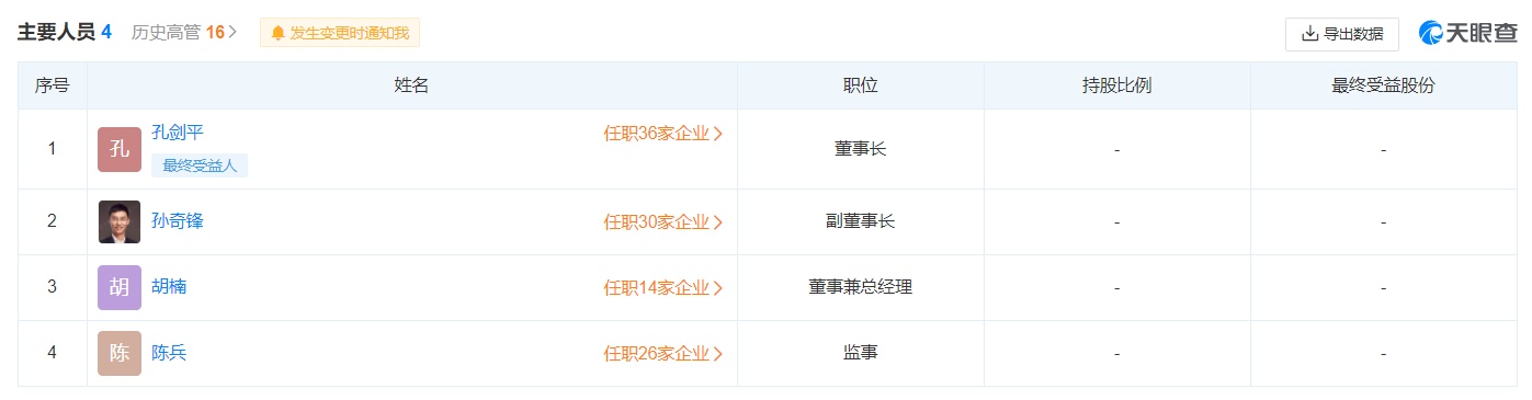 据天眼查数据显示,豪微科技的董事长为孔剑平、副董事长为孙奇峰、胡楠任职董事兼总经理、陈兵任职监事。其中,孔剑平、孙奇峰已是名声在外。