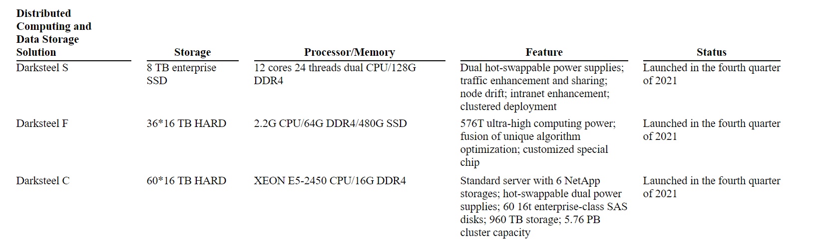 在分布式计算及数据存储方面,豪微科技于2021年第四季度推出了一系列Darksteel解决方案,包括S类、F类和C类,该等解决方案应用于工业和商业领域。