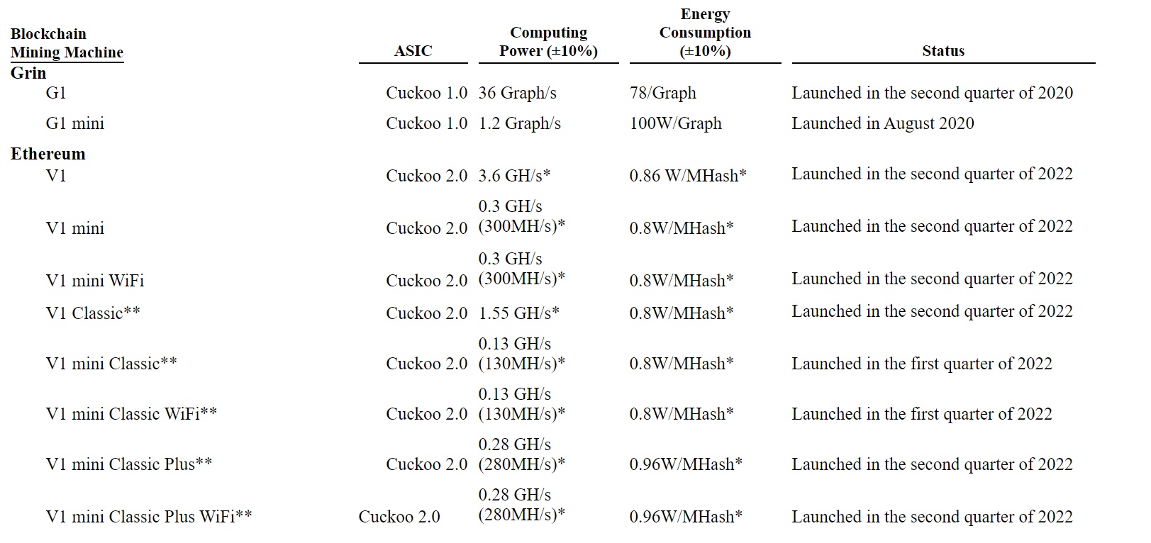 至2021年第四季度,豪微科技推出了Cuckoo 2.0芯片,基于该芯片,公司开发了用于挖掘ETH和ETC数字货币的ipollo系列矿机。目前正研发Cuckoo 3.0,有望于2023年推出。