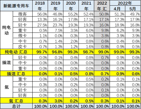今年的纯电动的需求改善,氢燃料车型表现压力仍较大。纯电动仍是发展趋势,微客和轻卡、轻客等各类纯电动车表现较好。插混车型市场表现较弱,