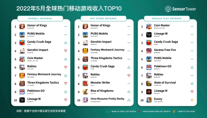 全球热门移动游戏收入TOP10完整榜单请见上文图表。
