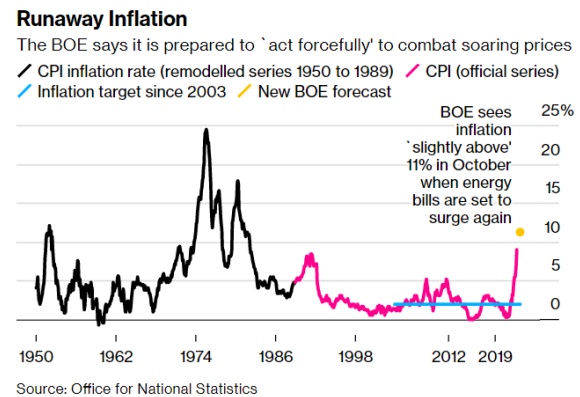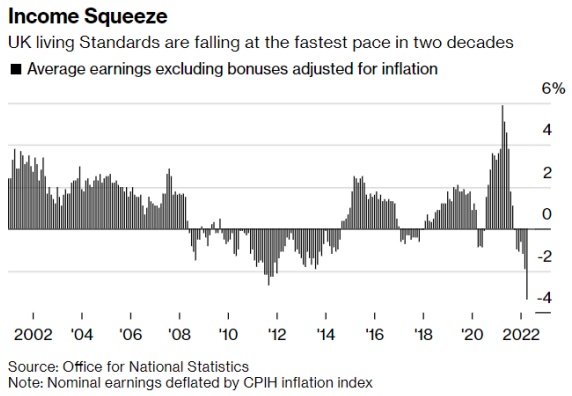 本周,英国可能将迎来通胀飙升和劳工罢工的双重冲击,再加上不断上升的经济衰退风险,这很难不让人想起该国曾在1970年代面临的痛苦情境。