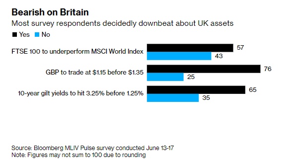 智通财经APP了解到,在彭博MLIV Pulse最新民意调查结果中,近四分之三的受访者对该国的未来持悲观态度。目前,该国的生活成本正在飙升,经济增长正在放缓,其与最大贸易伙伴欧盟的关系正在恶化。超过五分之四受访人士预计英国经济将在一年内陷入衰退,多数人认为英镑有可能提前触及新冠疫情低点,以及未来英国股市和债市将面临悲观局面。