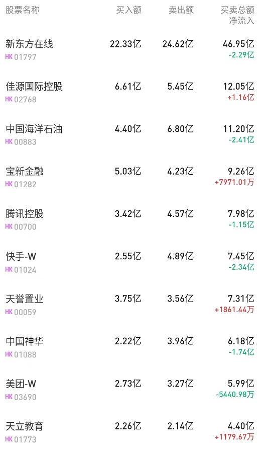 此外,碧桂园服务(06098)、宝新金融(01282)、天誉置业(00059)分别获净买入8019万、7971万、1861万港元。而腾讯(00700)遭净卖出2.59亿港元。