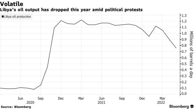 利比亚的石油生产经常因政治局势紧张而中断。4月下旬,利比亚国家石油公司(NOC)表示,一些主要油田和出口终端遭武装组织封锁,一家炼油厂因武装冲突受损,当时全国石油日产量减少逾55万桶。在去年9月,Mohamed Oun与利比亚国家石油公司董事长Mustafa Sanalla之间的矛盾激化引发了在利比亚几个关键石油码头的示威活动,同样对该国的石油生产造成冲击。