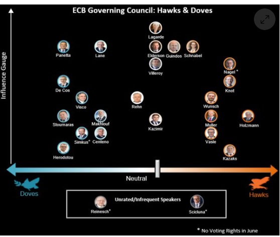 欧洲央行管委成员的鹰派与鸽派“站队”