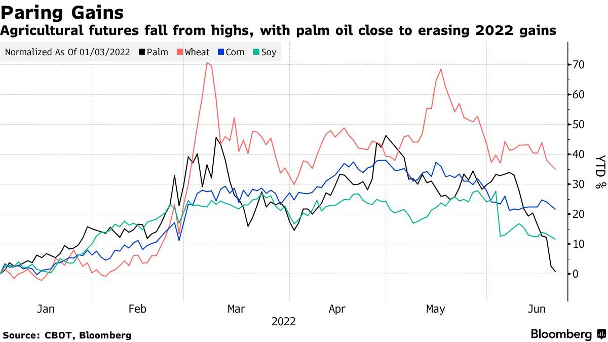 一些农产品期货价格从高点下跌,其中棕榈油期货接近抹去2022年涨幅