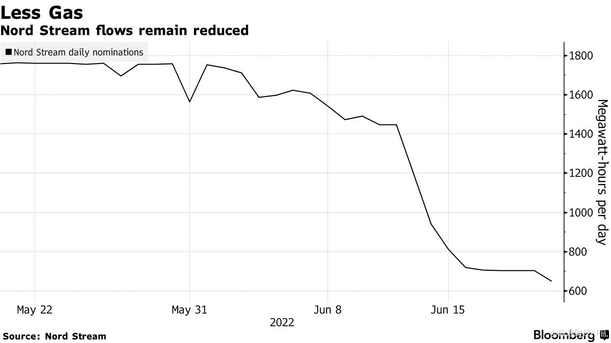 在通胀和增长乏力的情况下,俄罗斯大幅削减供气量正在威胁欧洲经济。德国最大的俄罗斯天然气买家Uniper SE表示,如果这种情况持续下去,该公司可能会难以向客户供应天然气。天然气供应短缺危机蔓延,丹麦宣布进入“早期预警”状态。