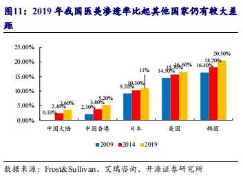 近年来,随着“她经济”飞速发展,女性对于美的追求和消费升级带动医美行业的蓬勃发展,医美服务从“轻奢品”转向“快消品”,医美消费从“小众”走向“大众”。2009 年以来我国医美渗透率处于高速提升状态,已由2009年的0.1%快速提升至2019年的3.6%。据《2021医美行业白皮书》显示,2015年至2019年我国医美行业正以超20%增速快速成长。