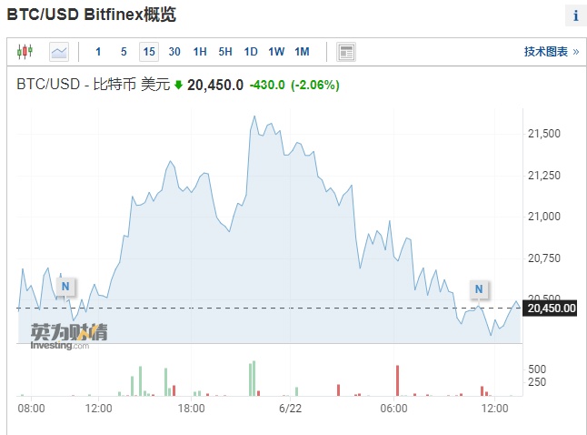 截至发稿,比特币下跌2.06%,报20450美元/枚。