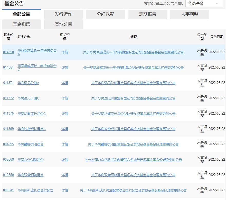 具体来看,公告显示,华商万众创新混合(002669)、华商均衡成长混合(A+C)由童立管理;华商双擎领航混合(010550)由高兵、张晓管理;华商卓越成长一年持有混合(A+C)由高兵管理;华商鑫安灵活混合(004895)由陈恒管理;华商远见价值混合(A+C)由李双全管理;华商创新成长混合发起式(000541)由吴昊管理。