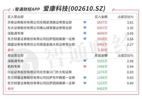 爱康科技(002610.SZ):龙虎榜阵容豪华,机构席位与游资产生分歧,卖出1448万元,深股通对倒净买入1507万元,买一是知名游资的席位买入5831万元,买二是知名游资的席位买入5047万元,当日净买入1.63亿元,该股今日强势突破所有均线,预计走趋势为主。