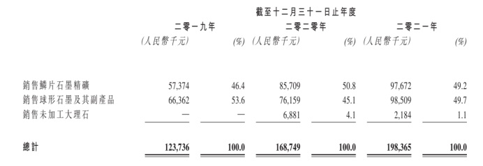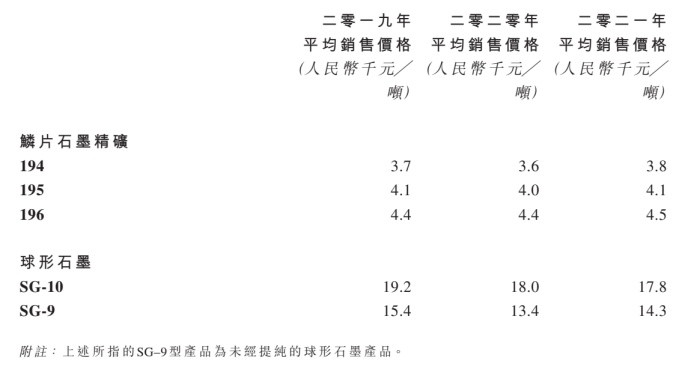 其背后,则或与球形石墨产品售价于近几年下降有关。据智通财经APP了解到,2019-2021年度,公司鳞片石墨精矿销量分别达18401吨、34134吨、37258吨,球形石墨销量分别达8319吨、10353吨、13842吨。