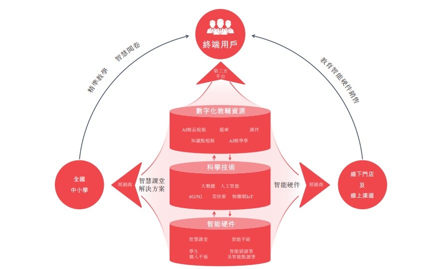 产品方面,公司设计、开发、制造和营销智能学习设备,包括学生个人平板、智慧课堂解决方案、可穿戴产品和一些智能配件。公司的智能学习设备嵌入数字化教辅资源,主要是同步预习、复习及学习材料,是对中国中小学生校内学习的补充。于往绩记录期间,公司的绝大部分收入来自销售公司的智能学习设备。目前,终端用户仅可通过公司的智能学习设备访问公司设备自带的嵌入数字化教辅资源,且公司并无就该等嵌入的数字化教辅资源单独收取额外费用。