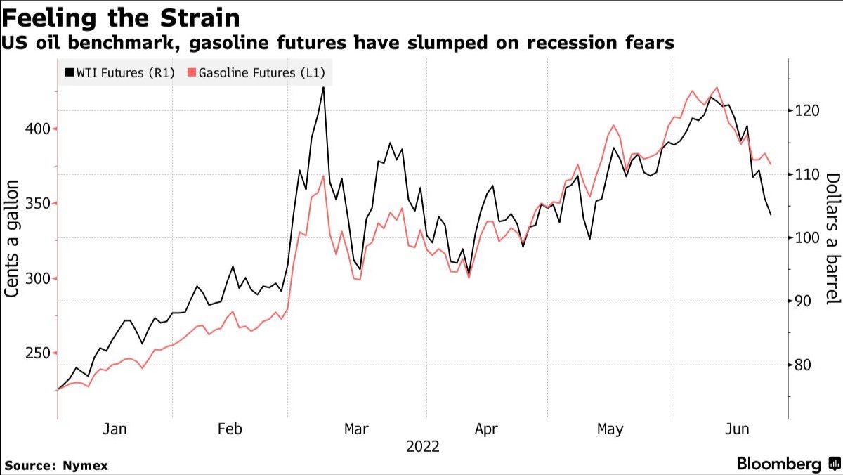 智通财经APP获悉,当地时间周三,美联储主席鲍威尔表示,随着美联储加息以应对通胀,美国可能出现经济衰退。市场由于担心经济放缓将损害能源消费,油价延续了下跌趋势。截至发稿,WIT原油期货跌超3%,报102.91美元/桶,处于5月12日以来的最低水平。布伦特原油期货跌2.77%,报108.65美元/桶。