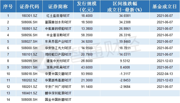 6月14日,首批于2021年6月7日发行的9只REITs均已解禁。