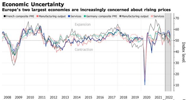 报告显示,目前欧盟经济活动仍在某种程度上受到今年早些时候积累的工作量的支撑。但是,世界经济面临的一系列挑战让人担心衰退即将来临。