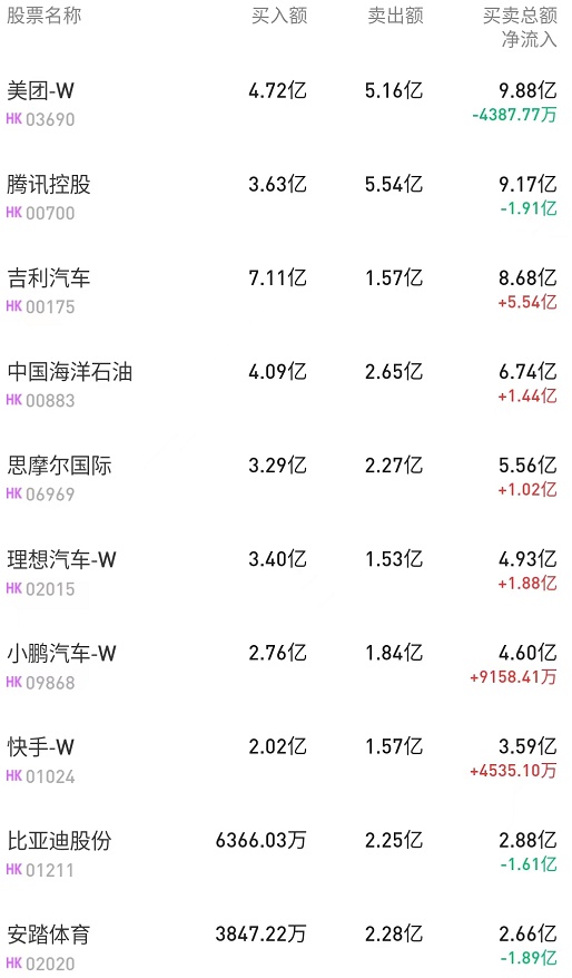 北水资金继续加仓汽车股,理想汽车-W(02015)、吉利汽车(00175)、小鹏汽车-W(09868)分别获净买入5.67亿、5.54亿、9158万港元。消息面上,国务院常务会议指出,要进一步释放汽车消费潜力,一是活跃二手车市场,促进汽车更新消费。二是支持新能源汽车消费。三是完善平行进口政策,支持停车场建设。政策实施预测今年增加汽车及相关消费大约2000亿元。中金表示,中金发表报告指,内地购置税政策超预期,汽车市场预期强力复苏,建议关注头部自主整车和新势力车企。
