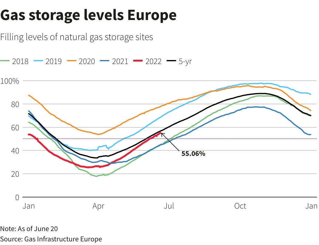 德国副总理兼经济和气候保护部长哈贝克(Robert Habeck)周四在一份声明中表示,德国正处于天然气危机之中。根据第二阶段应急计划,德国将额外提供150亿欧元(约合158亿美元)的贷款用于补充天然气储备,以便为冬季做好准备。同时,德国还将启动额外的燃煤发电,取代目前的天然气发电,借此加强天然气的储备,相关的法律预计将于7月8日通过。