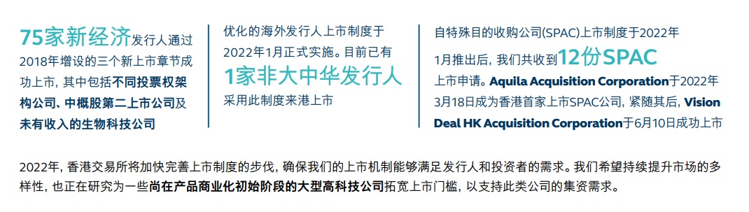 与此同时,上市制度改革也吸引了众多前沿技术领域的科技企业(包括来自大中华地区的医疗保健及资讯科技行业龙头),使香港 市场的多样性、流动性与深广度得到进一步提升。