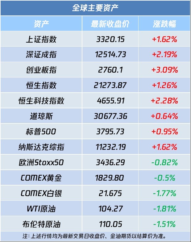 市场表现方面,市场持续担心激进加息将令经济无可避免陷入衰退,10年期美债收益率连续两日两位数大幅下挫,美债收益率走低推动科技股攀升,纳指收涨1.62%。