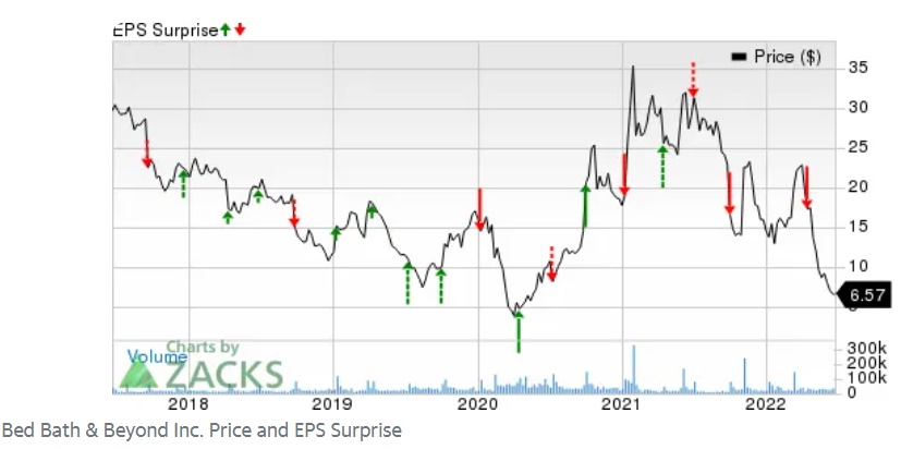 智通财经APP获悉,3B家居(BBBY.US)将于6月29日发布2022年第一财季业绩,该公司预计将公布销售额和收益下降。Zacks Consensus数据显示3B家居第一财季收益预计为每股亏损1.28美元。这一共识预期在过去30天里一直没有改变。市场普遍认为第一财季销售额为15.3亿美元,较上年同期下降21.7%。