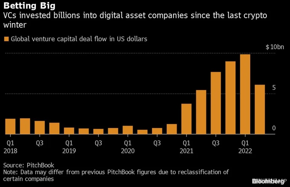 根据PitchBook的数据,自2020年底以来,安德森霍洛维茨等投资巨头向加密货币行业注入近 430 亿美元。虽然风投公司现在可能变得更加谨慎,但仍有大量资金留在该行业。