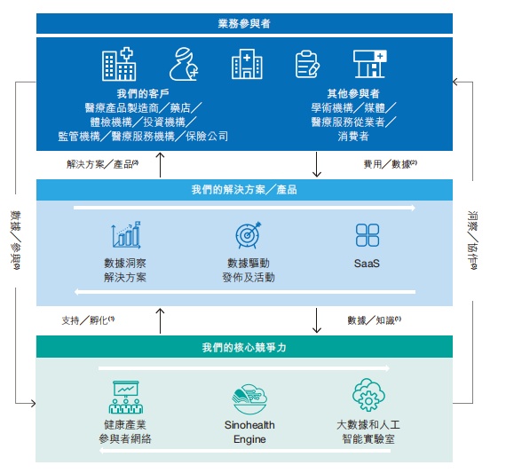 了解医渡科技的投资者,应该能快速理解中康控股的商业模式。医渡科技是基于医疗大数据基础设施YiduCore,凭借其强大的数据处理能力、医疗知识数据库等支撑该公司的三大业务。中康控股也不例外,通过产品孵化平台Sinohealth Engine,使得该公司旗下的数据洞察解决方案、数据驱动发布及活动、SaaS产品三大业务能够高效运行。