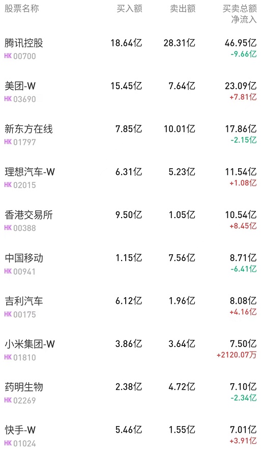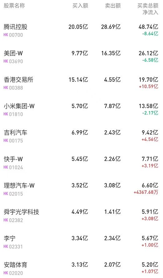 快手-W(02015)、美团-W(03690)分别获净买入7.09亿、1.22亿港元。消息面上,天风证券表示,整体而言,虽然不排除外围环境短期扰动,但预计“优质互联网资产”价值回归趋势或可延续。看好宏观和监管因素改善的共振下,平台企业增长动能有望逐步修复。中信建投则认为,前期各项压力正逐步趋于稳定,可预见性不断增加,其中政策面起稳,而随着宏观及疫情恢复,基本面也将迎来修复,互联网在二季度有望出现“政策底”+“业绩底”。